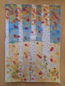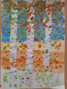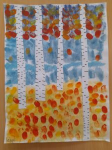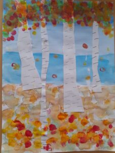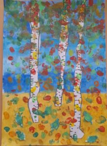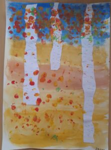 Kunstunterricht in der Klasse 3c: „Birken im Herbstlaub“