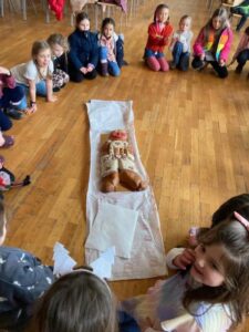 „Gesund macht Schule“ ist ein Programm zur Prävention und Gesundheitsförderung in Grundschulen. Jeder teilnehmenden Grundschule wird eine Patenärztin zugewiesen. Unsere Patenärztin ist die Virologin Frau Pirjo Rehmann. Sie bearbeitet mit den Kindern beispielsweise die Themen „Schwangerschaft und Geburt“. Frau Rehmann bringt kindgerechtes Material mit in die Schule und bespricht mit den Kindern z.B. die Entwicklung von Babys im Mutterleib. Ebenso beantwortet sie Fragen der Kinder.