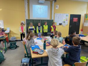 Am Freitagmorgen standen Kinder des vierten Schuljahres vor den Toren und haben die ankommenden Kinder befragt, wie sie zur Schule gekommen sind. Um möglichst genaue Zahlen zu erhalten, sind die Mädchen und Jungen danach noch in alle 12 Klassen unserer Schule gegangen und haben eine Tabelle angefertigt: Wer kam zu Fuß? Mit dem Fahrrad? Mit dem Roller? Mit Bus oder Bahn? Mit dem Auto?