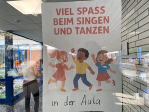 Am 5. Juli 2025 war es endlich soweit: Wir durften Teil eines gigantischen Konzertes mit 6000 anderen Kindern aus NRW sein. Das Motto lautete „Ich bin, weil wir sind!“. Wir trafen uns alle vor der Schule, um gemeinsam zum PSD Bank Dome in Rath zu fahren. Bei der Generalprobe hatten wir bereits Gänsehaut. Zusammen mit 6000 Kindern, professionellen Sängern und einer richtig coolen Band zu musizieren, ist schon etwas ganz Besonderes.