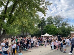 „Schule ist mehr“ – So lautete das Eröffnungslied, das von Kindern des zweiten Schuljahres und dem Schulchor lautstark gesungen wurde. Im Anschluss begrüßte Frau Nicolay gemeinsam mit dem Team der Marien-Schule die zahlreich erschienenen Familien auf unserem Schulhof. Im Anschluss hatten die Kinder und ihre Familien Gelegenheit, die Räumlichkeiten unserer Schule kennen zu lernen und mit Mitarbeitenden ins Gespräch zu kommen. Für die Kinder gab es bunte Bastel-, Bewegungs- und Spielangebote in den Klassenräumen, in der Aula und in der Turnhalle: Tanzen zu Musik, Marienkäfer basteln, erstes Programmieren, Buttons gestalten, Mathematik-Spiele und Leseangebote.