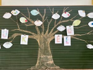 Alle Kinder aus dem 2. Schuljahr können jetzt richtig gut lesen. Und das haben wir mit einem ABC-Fest am 28. November 2024 in der Aula gefeiert. Viele Eltern, Geschwister und auch Omas und Opas waren gekommen und freuten sich über die Präsentation der Kinder. Die Erdmännchen, Igel und Waschbären hatten extra für diesen Anlass T-Shirts mit dem Anfangsbuchstaben ihres Namens bemalt. Los ging das bunte Programm mit dem Lied „Herzlich willkommen, ihr lieben Leute“. Es folgten Gedichte rund um das ABC. Zum Abschluss sangen die Kinder aus voller Kehle „Schule ist mehr“. Am Ende gab es einen großen und verdienten Applaus für die Kinder und ihre tolle Vorstellung.