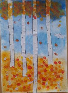 Kunstunterricht in der Klasse 3c: „Birken im Herbstlaub“
